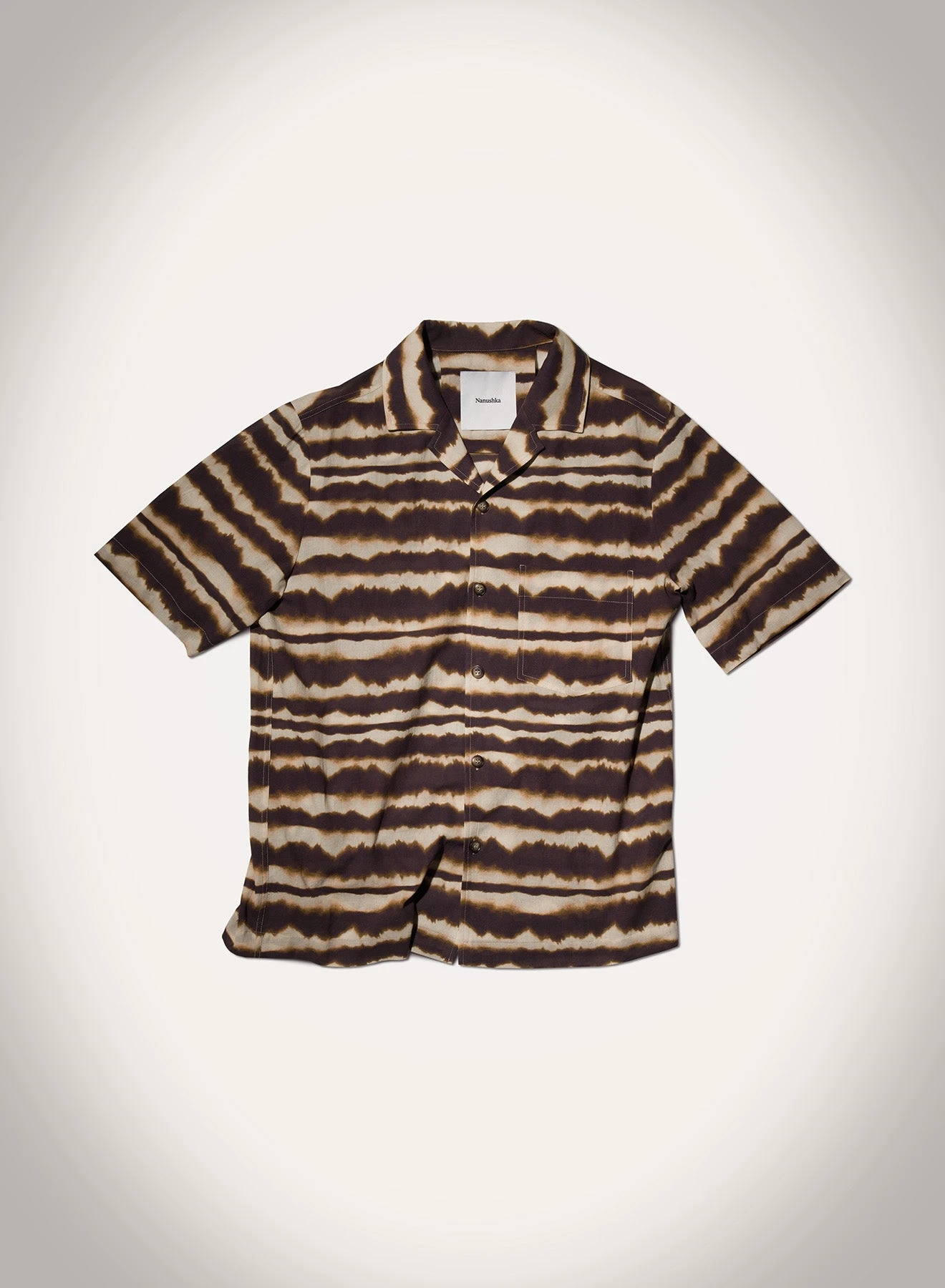 Circularity is at the heart of our ethos. The Bodil shirt is made from cotton voile upcycled from one of our previous collections. Decorated with tie dye stripes, it has a small patch pocket and an open collar.