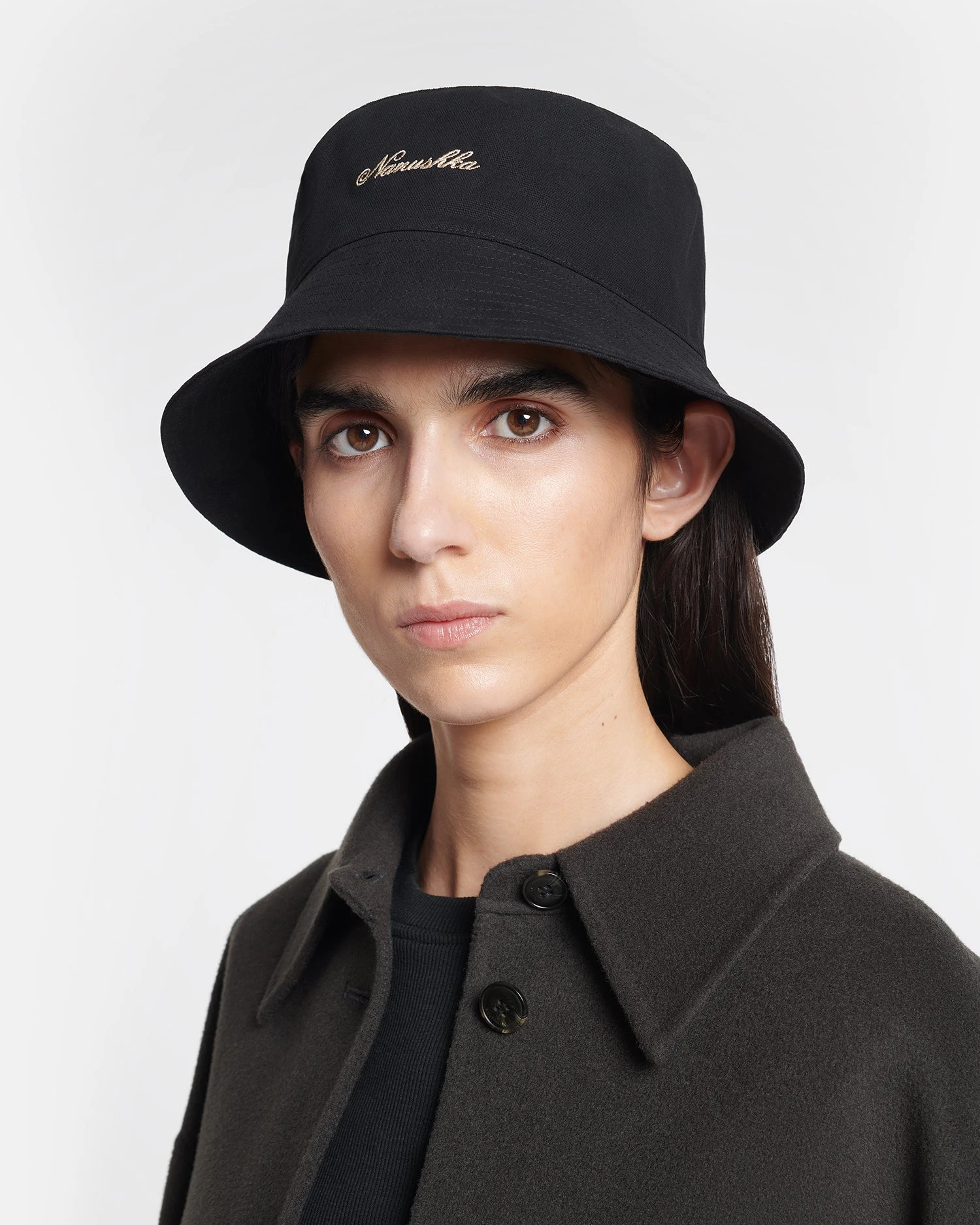 Nanushka Caran – Signature Calligraphy Bucket Hat – Black