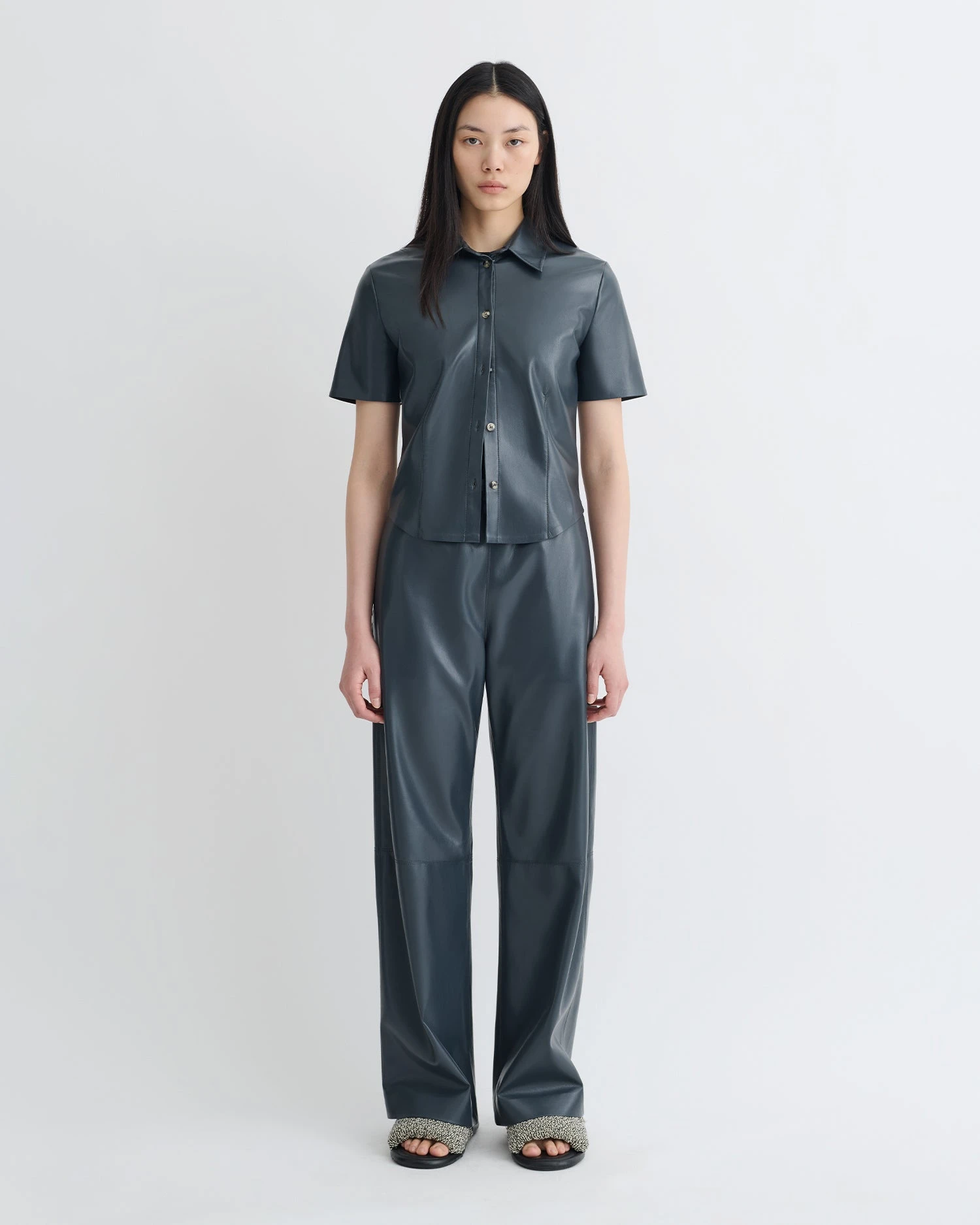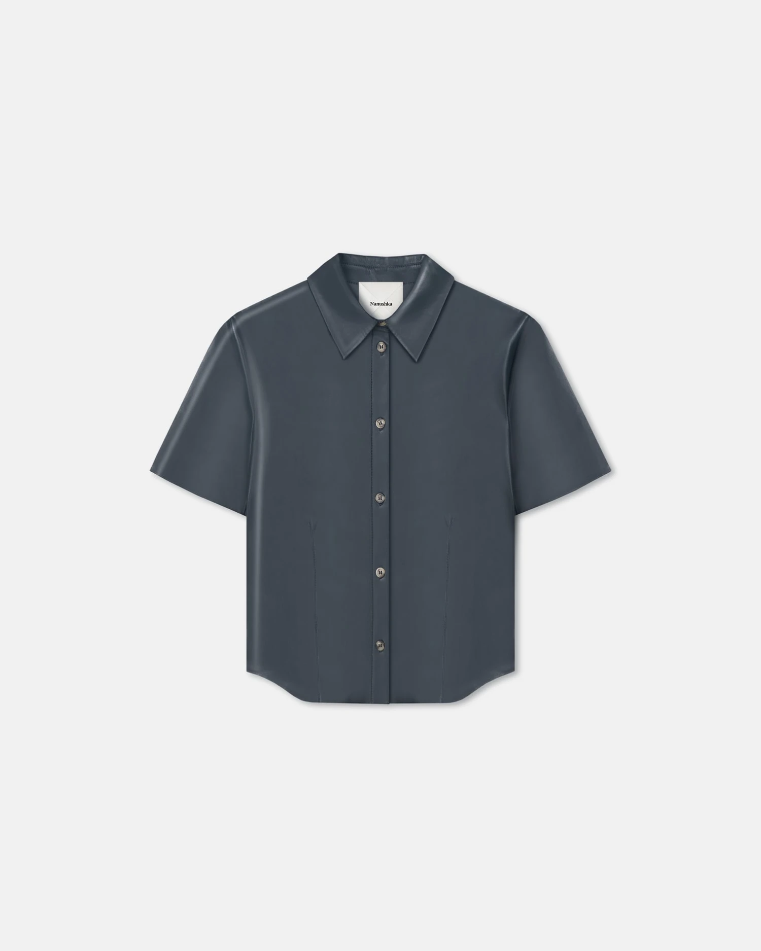 The Clare shirt exemplifies understated elegance. It’s made from our signature Okobor™ in steel blue for a slim-fitting, short-sleeved silhouette.