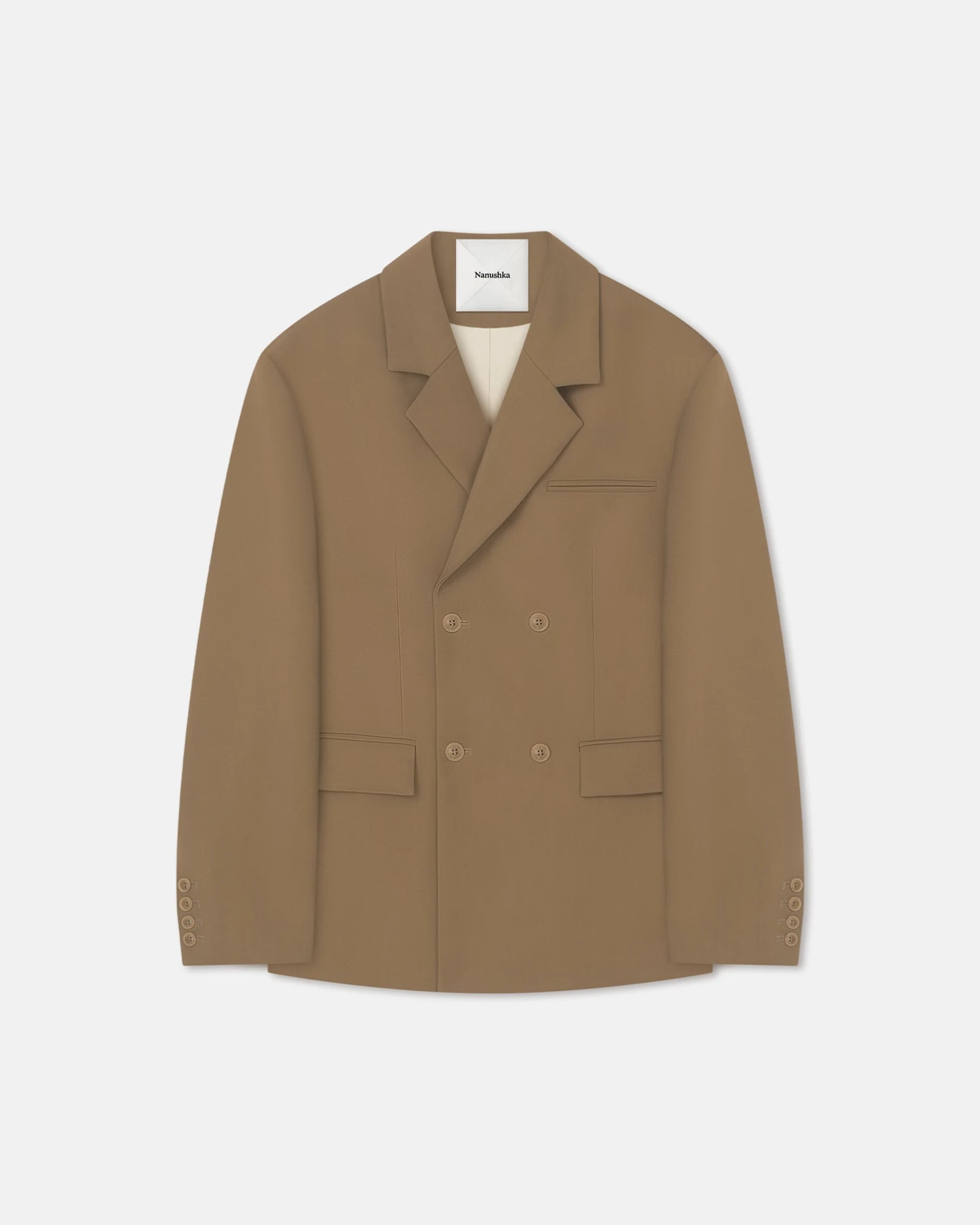 Experimentation with silhouette is a true Nanushka design signifier. The Diante blazer is expertly tailored for a boxy double-breasted fit and feels even more modern thanks to the brown tone.