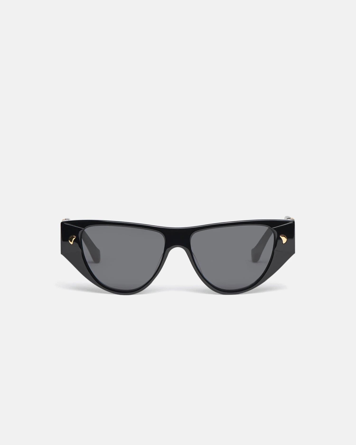 The Emme sunglasses are defined by angular cat-eye frames accented with signature gold ‘N’ motifs at the temples. In a long-standing commitment to responsible production, they are made from black bio-based plastic and housed in an upcycled alt-leather pouch.