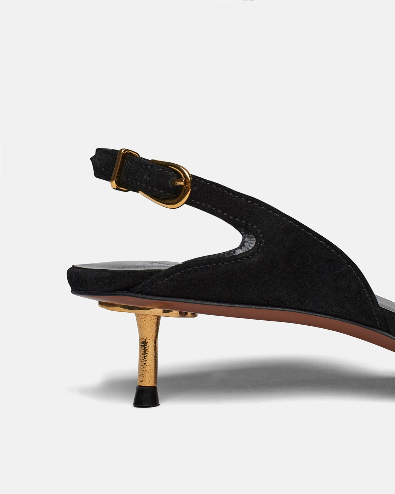Sculptural shapes and gold-tone detailing are Nanushka signatures. Crafted from classic black suede, the Enaji sandals have an elongated square-toe and curved buckle-fastening straps. The gilded kitten heel offers manageable lift.