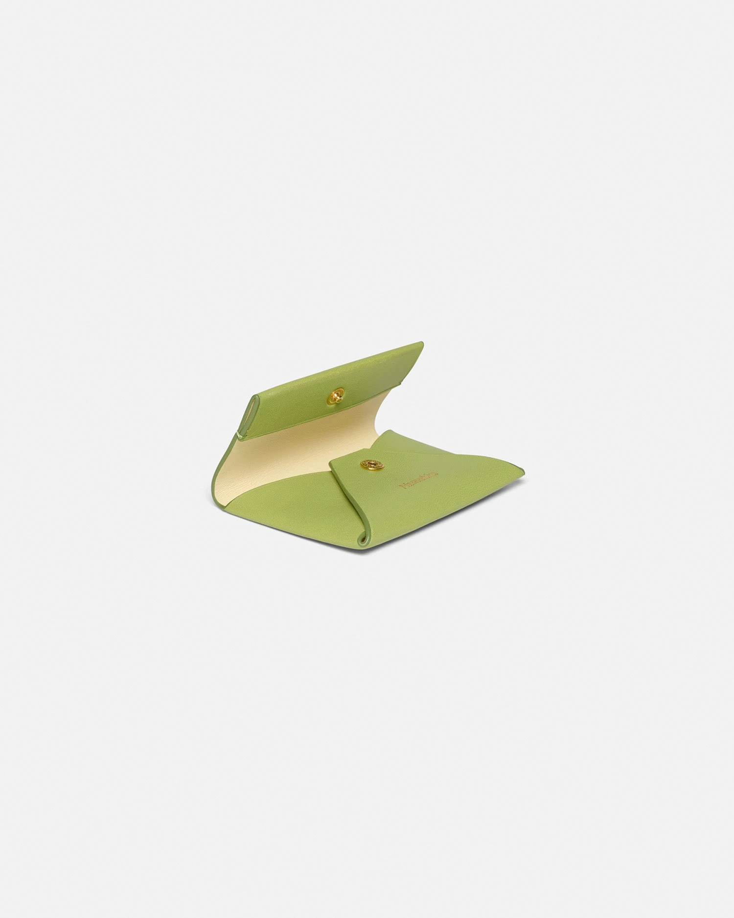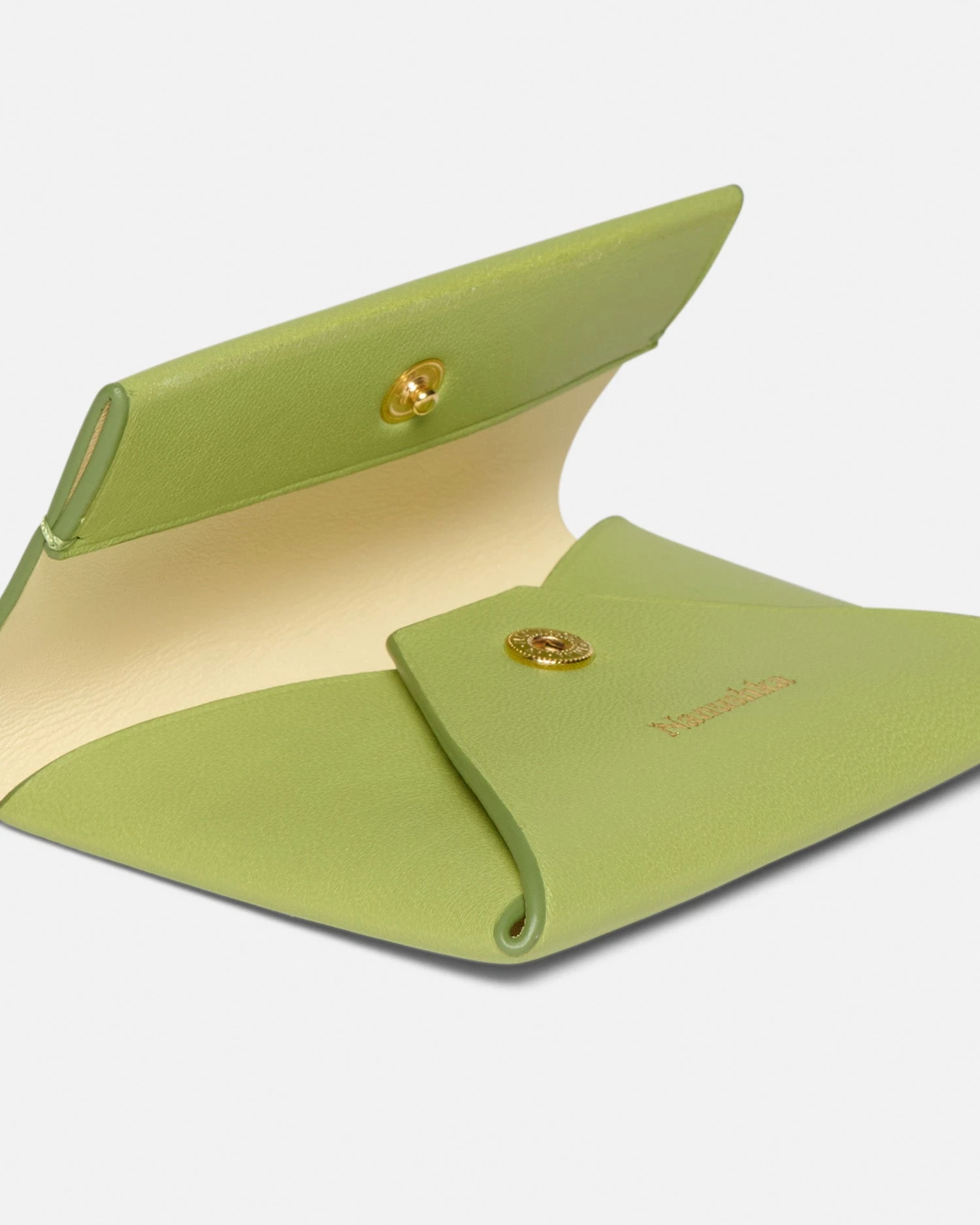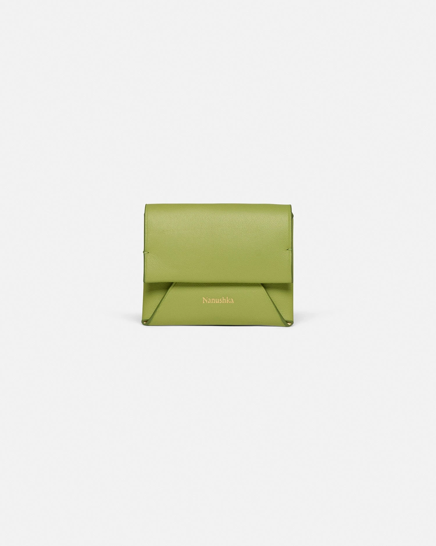 Designed in Nanushka’s signature Origami style, the folded cardholder folds flat and is crafted from structured leather. The lime exterior is contrasted by a signature moonbeam interior, complete with a blind-debossed Nanushka wordmark and brushed gold hardware.