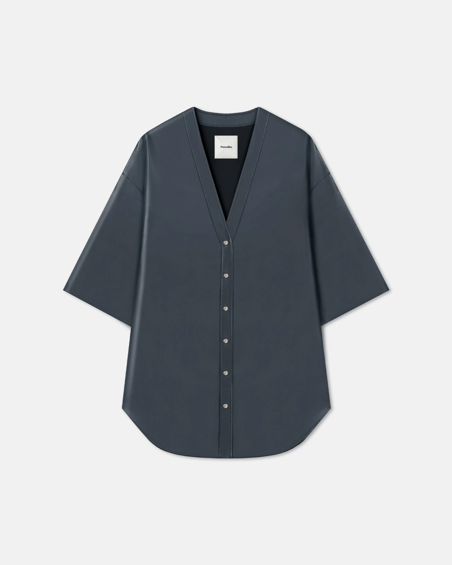 We always look to create something entirely new with our signature innovative fabric. The Ingar dress is made from Okobor™ alt-leather for an ultra-oversized fit enhanced by wide sleeves. Wear it on its own or layered over streamlined separates.
