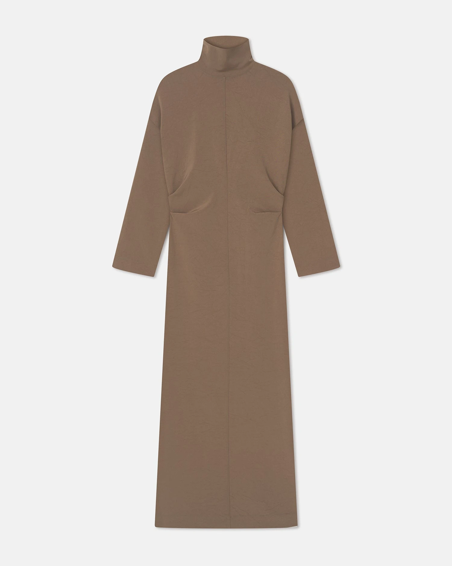 The Jamson dress is made from lightweight paper jersey that hangs and drapes beautifully around the body. Understatedly elegant, it has a turtleneck and comes in a brown tone.