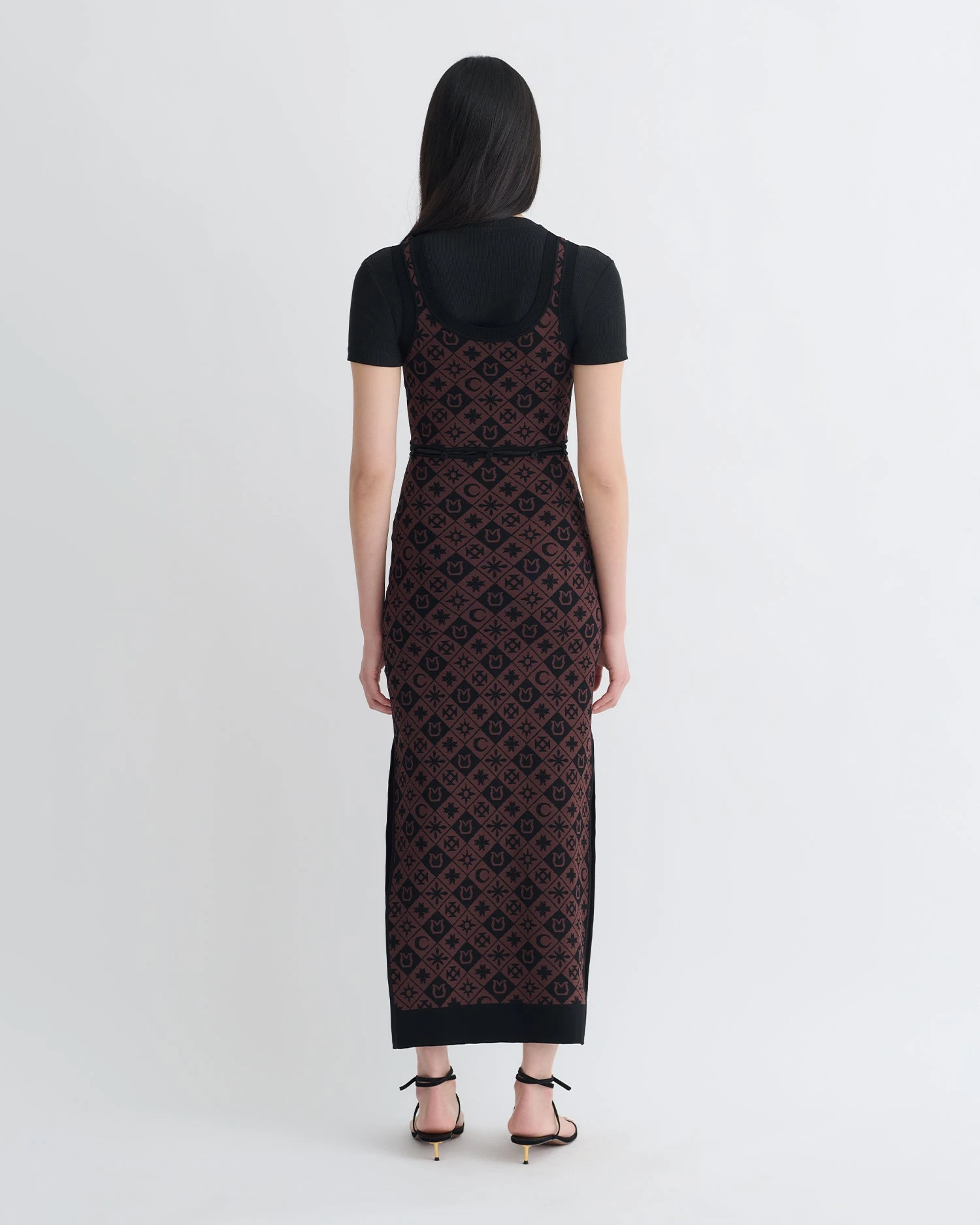 The Maves dress is relaxed yet refined. Knitted for a close fit, it’s enhanced by a row of buttons at the waist. With our Symbol Tile print, it’s ideal for day and night.