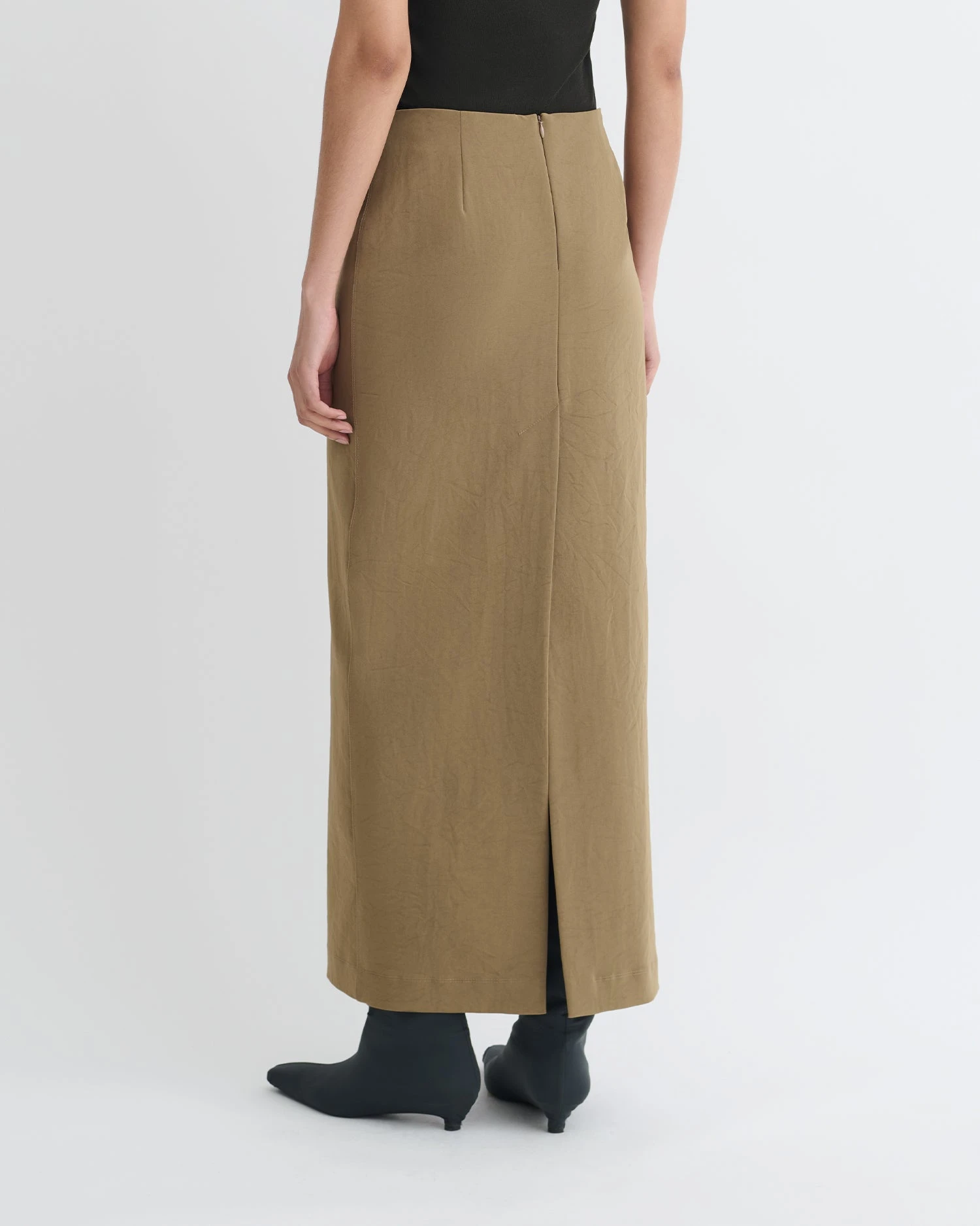 Streamlined and minimalist, the Nya skirt is inspired by ‘90s office wear aesthetics. It’s made from lightweight paper jersey in a brown and has a simple column silhouette. Wear yours with the coordinating Sitara top for understated sophistication.