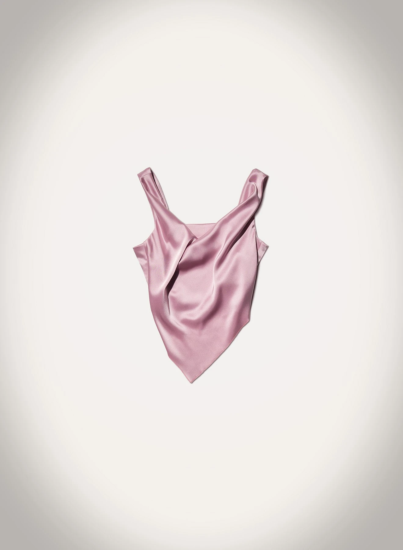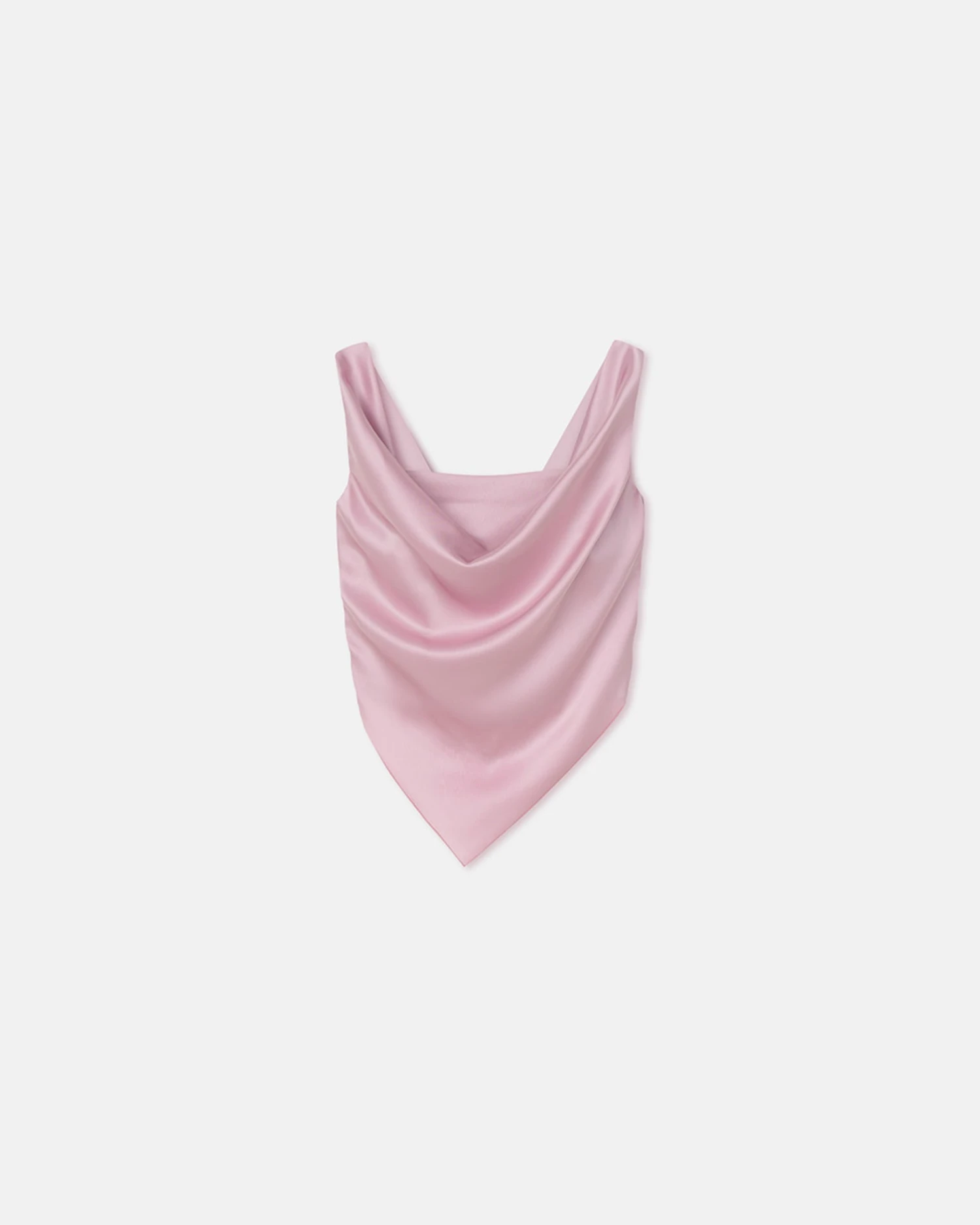 The Petra top is made entirely from upcycled slip satin in a dusty-pink hue. It falls into a draped silhouette and is further distinguished by wide straps and a scarf-inspired handkerchief hemline for effortless elegance.