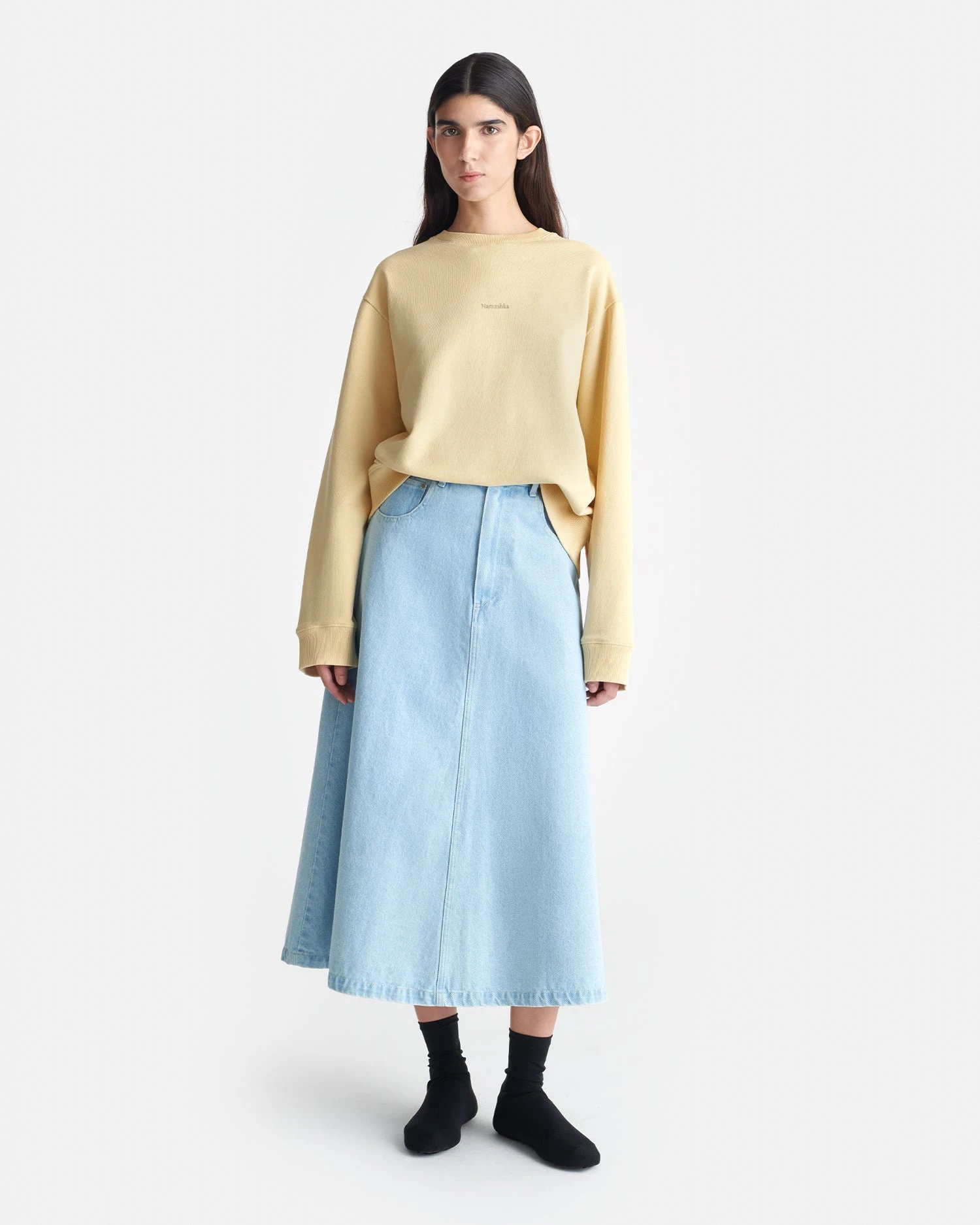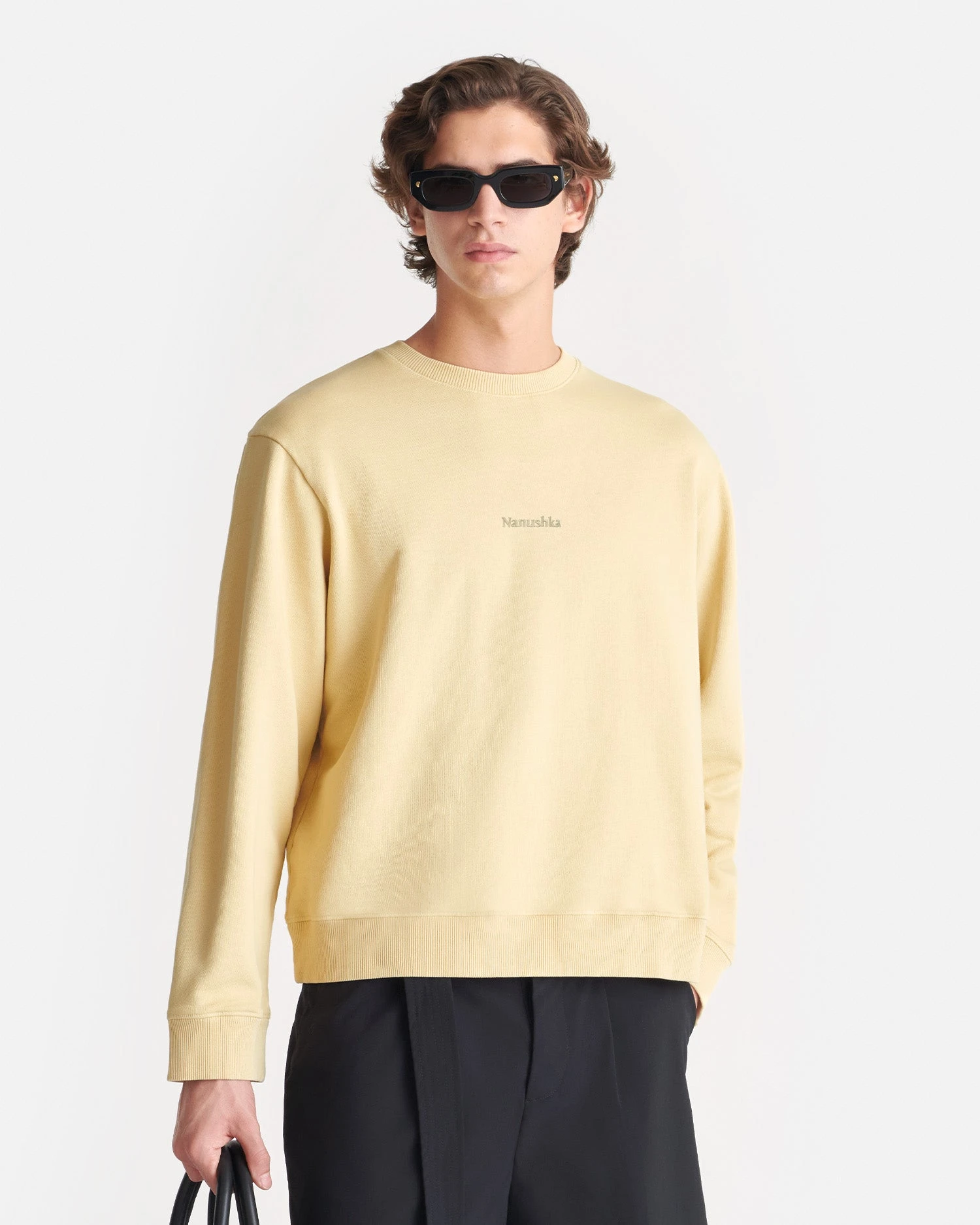 The Remy sweater is cut for a relaxed fit with the Nanushka logo embroidered on the front. The back of the sweater reveals an embroidered print of the Gingerbread Heart painting by Hungarian artist Adolf Fényes. It’s made from organic cotton fleece for superlative softness.
