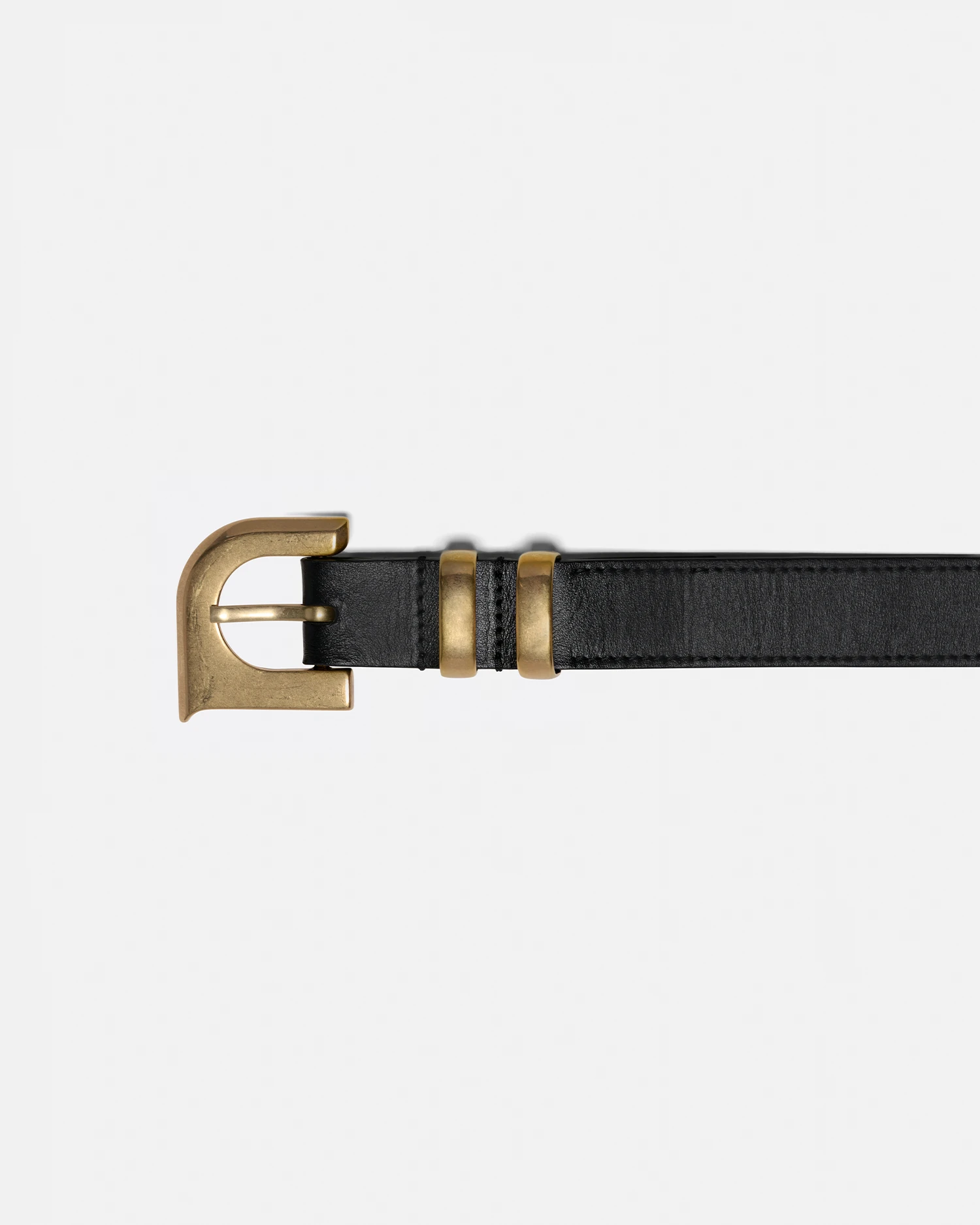 A nod to Nanushka’s devotion to craft, the Ryker belt is made from structured black leather, connected with the signature single ‘N’ Monogram buckle hardware. Developed in-house in a warm brushed gold.