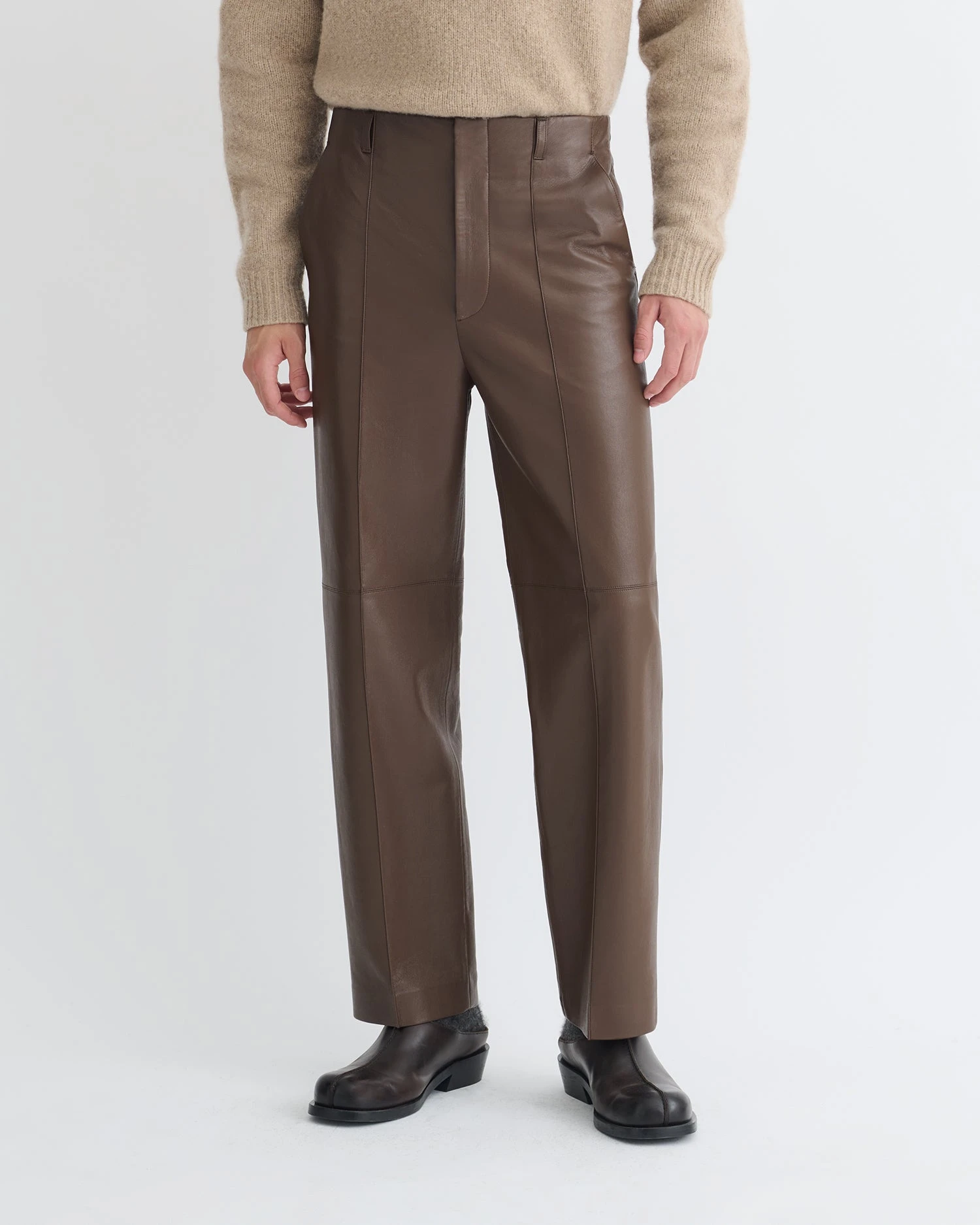 The Stellan pants are made from regenerated leather for a straight-leg fit. They are detailed simply with belt loops and seam details for a sleek, clean-lined finish.