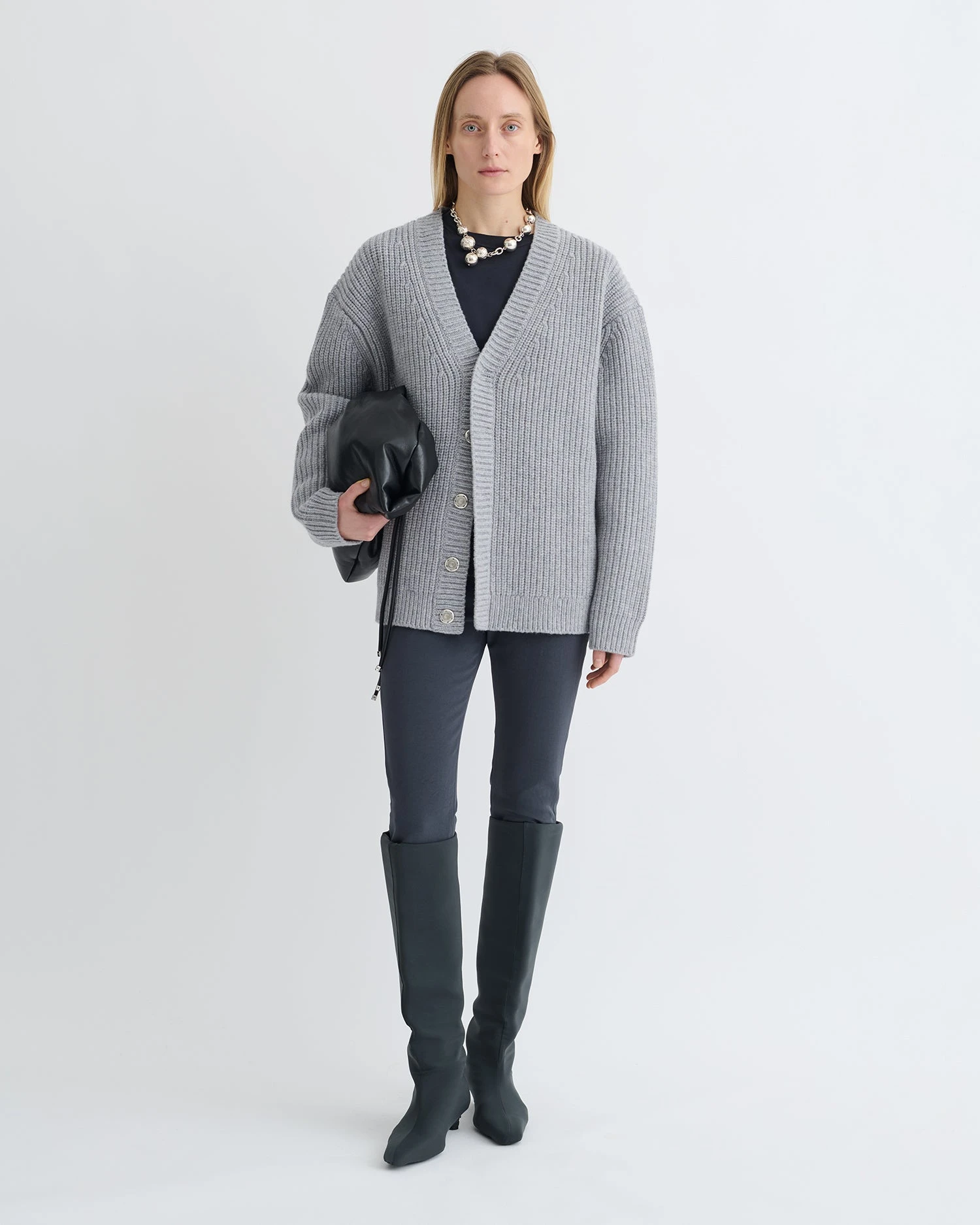 The Varten cardigan is timeless. Itās knitted from the softest blend of merino wool and cashmere for a cozy, oversized fit, and comes in classic light grey.
